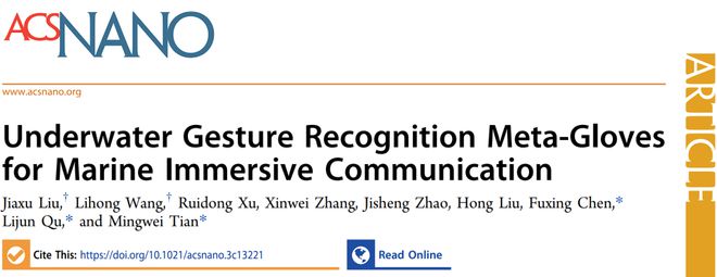 青岛大学田明伟教授ACSNano:探索水下交互新境界智能手套应用于手势识别